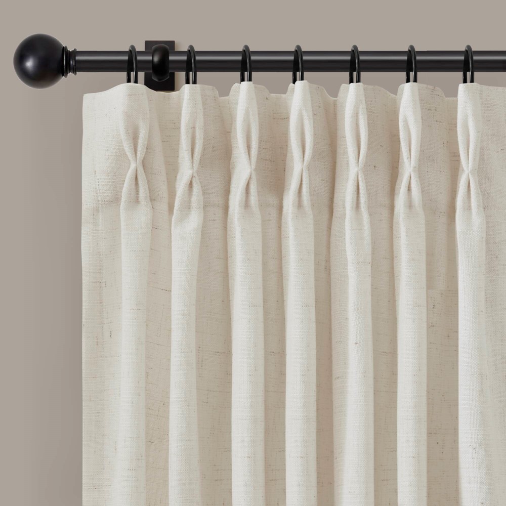Bring timeless sophistication to your space with these premium curtain panels. Each pair is woven from a heavyweight poly-linen blend, offering a soft, natural texture and lasting durability. The elegant pinched pleat design adds structure and a tailored finish, making them perfect for both modern and classic interiors. These curtain panels gently filter sunlight, providing soft illumination and subtle privacy without completely blocking your view. Each pair includes 16 hooks and iron rings, with 2 spare parts, ensuring easy installation and lasting use. Perfect for living rooms, bedrooms, or dining areas, they create a light, airy atmosphere while adding an elevated touch of luxury.
