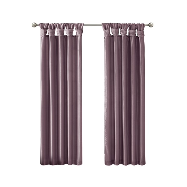 Madison Park Emilia 100% Polyester Solid Faux Silk Lined Twist Tab Window Curtain in Purple, 50×108" MP40-3554