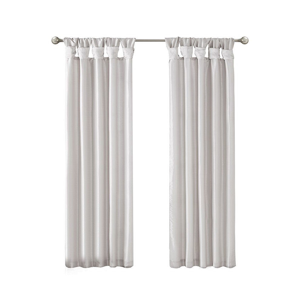 Madison Park Emilia 100% Polyester Solid Faux Silk Lined Twist Tab Window Curtain in Silver, 50×120″ MP40-6329