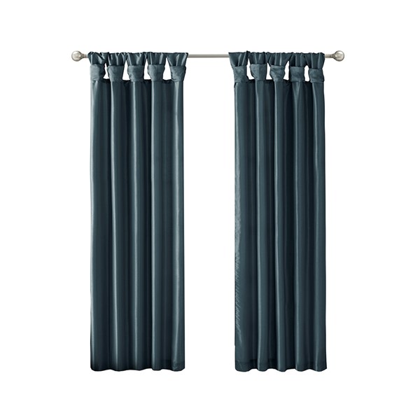 Madison Park Emilia 100% Polyester Solid Faux Silk Lined Twist Tab Window Curtain in Teal, 50×120" MP40-5272