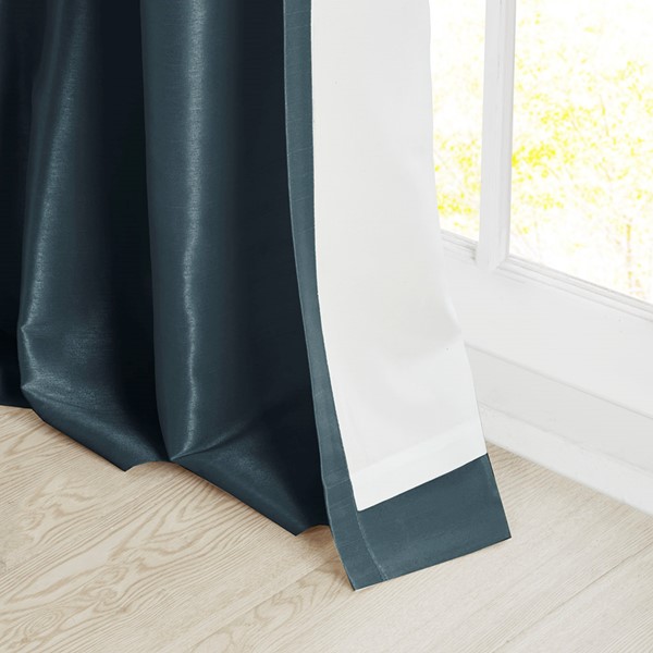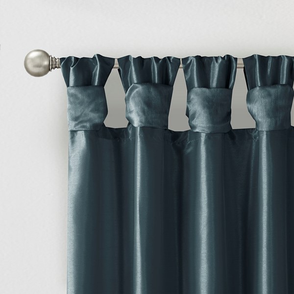 Madison Park Emilia 100% Polyester Solid Faux Silk Lined Twist Tab Window Curtain in Teal, 50×95" MP40-2972