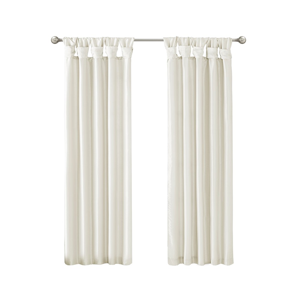 Madison Park Emilia 100% Polyester Solid Faux Silk Lined Twist Tab Window Curtain in White, 2-PK 50×84″ MP40-8259