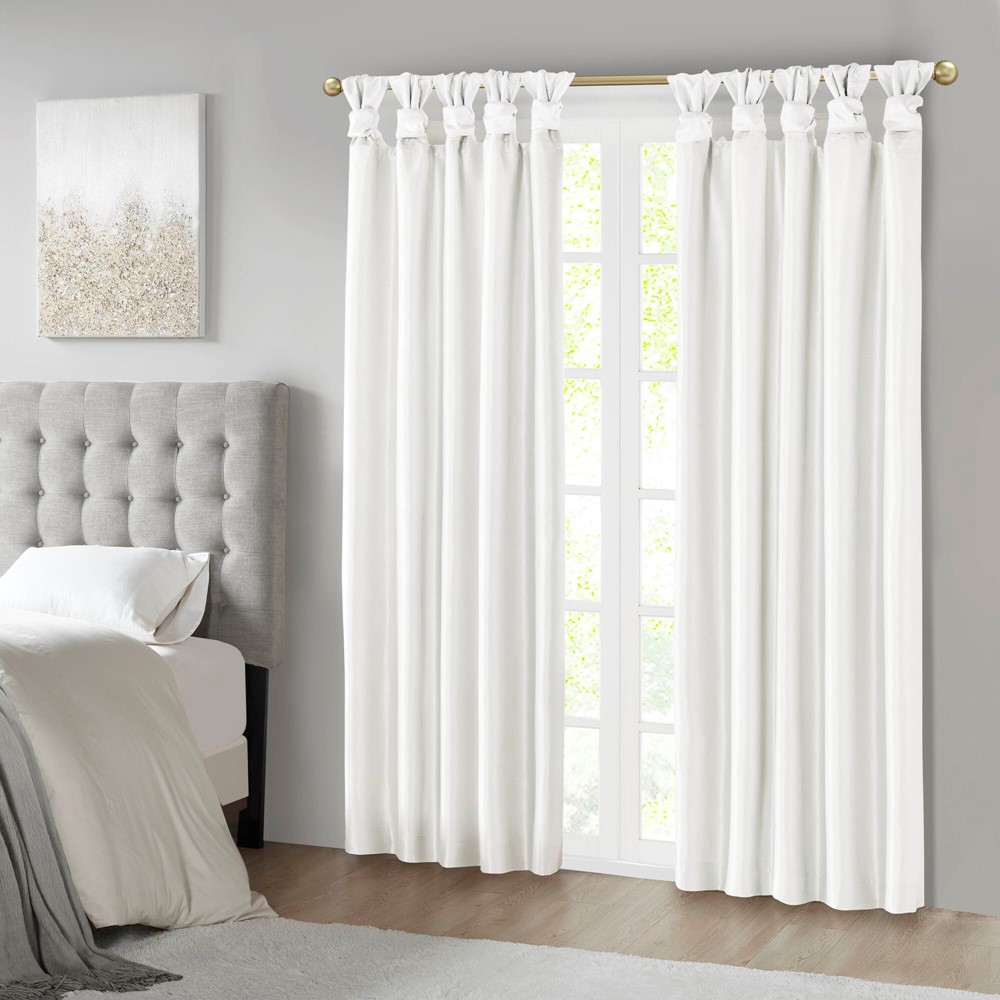 10 reviews for Madison Park Emilia 100% Polyester Solid Faux Silk Lined Twist Tab Total Blackout Window Curtain in White, 50×95″ Blackout MP40-6367