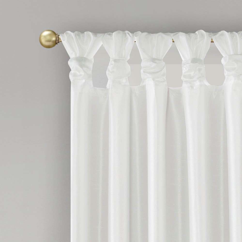Madison Park Emilia 100% Polyester Solid Faux Silk Lined Twist Tab Total Blackout Window Curtain in White, 50×95″ Blackout MP40-6367