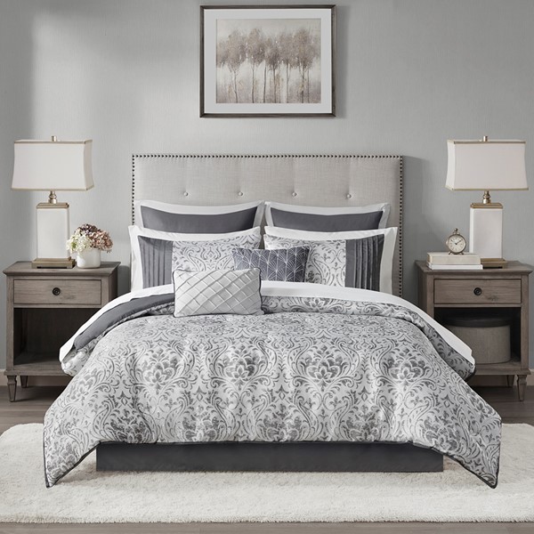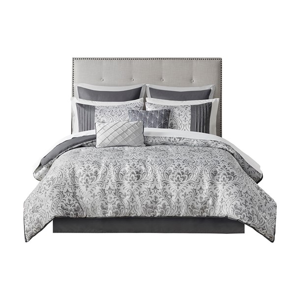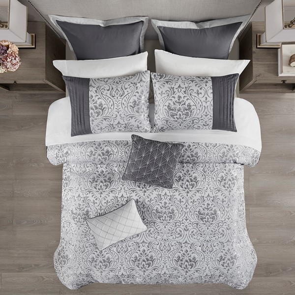 Madison Park Emilia 12 Piece Jacquard Comforter Set with Bed Sheets in Silver, King MP10-8438