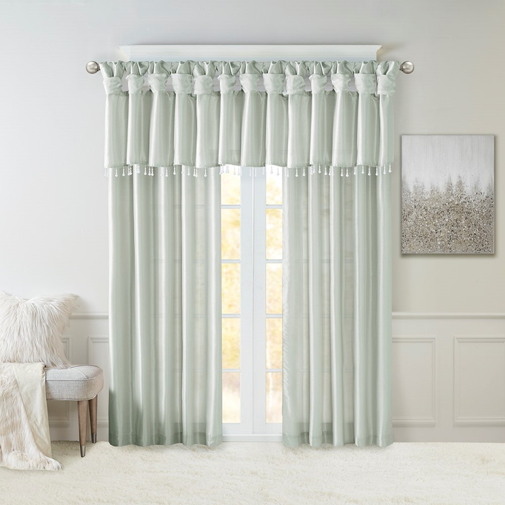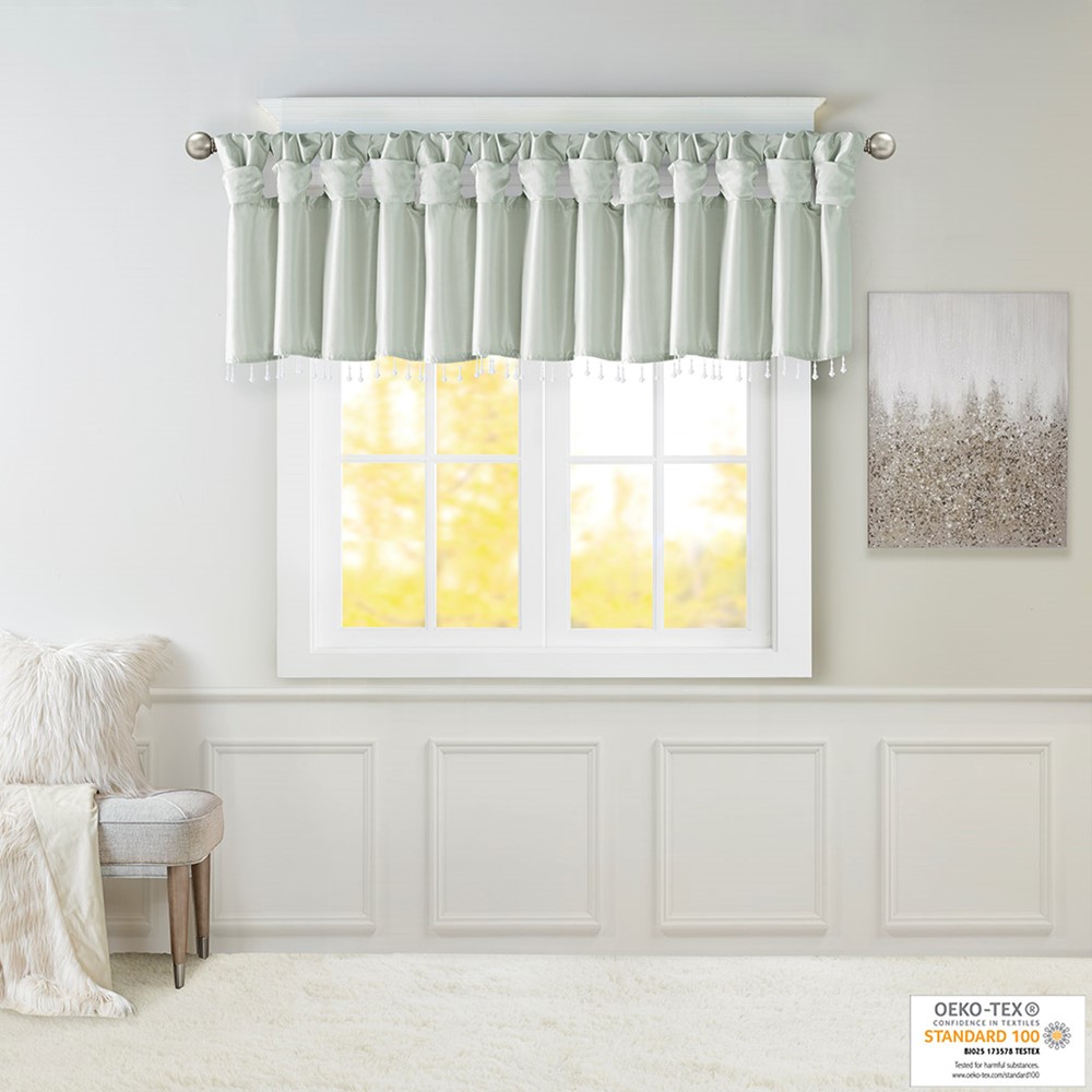 Madison Park Emilia Lightweight Faux Silk Valance With Beads in Dusty Aqua, 50×26″ MP41-4455