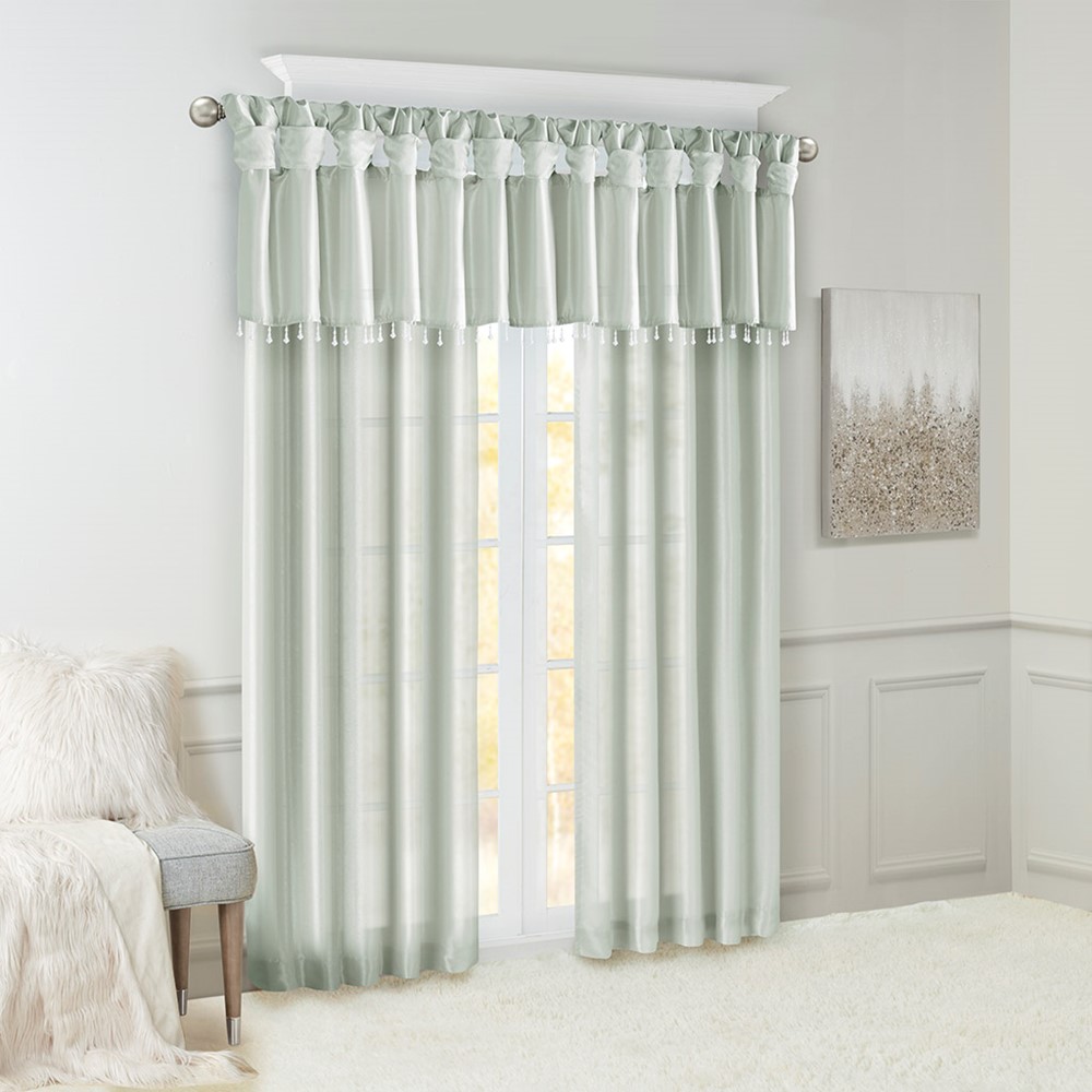 2 reviews for Madison Park Emilia Lightweight Faux Silk Valance With Beads in Dusty Aqua, 50×26″ MP41-4455