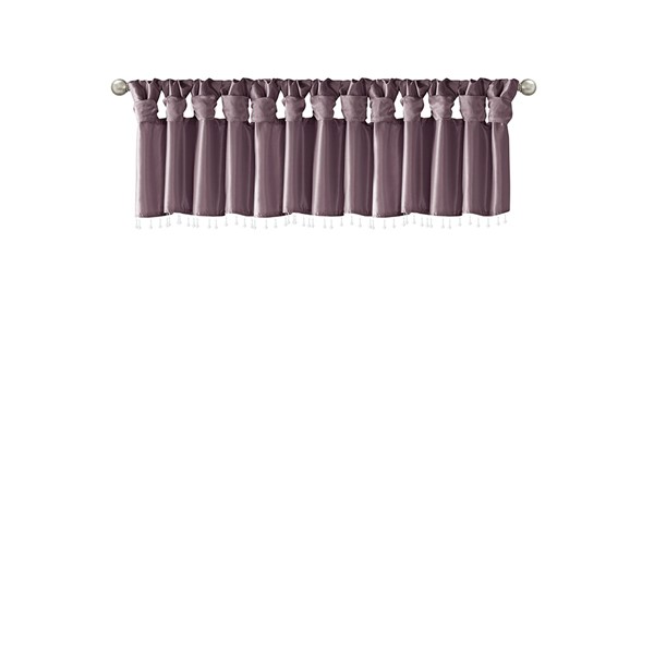 Give your home a decorator’s touch with the Madison Park Emilia Window Valance. Made from a faux silk fabric, this elegant window valance features a DIY twist tab top finish that creates rich deep folds, combined with a beautiful bead trim for an alluring charm. Added lining offers more privacy and a fuller appearance, while the luxurious sheen and jewel purple tone provides a touch of sophistication to your decor. Easy to hang, this tab top valance updates any decor into subtle glamour. Hanging instructions are included. Fits up to a 2" diameter rod.