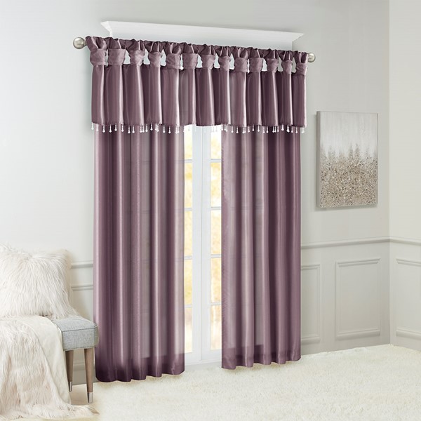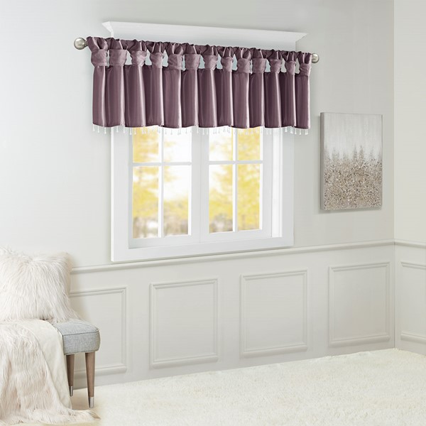 Madison Park Emilia Lightweight Faux Silk Valance With Beads in Purple, 50×26" MP41-4476