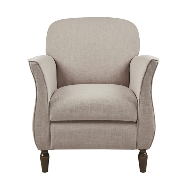 The Madison Park Escher Accent Chair brings a touch of elegance to your home decor. This accent chair is upholstered in a rich cream fabric and features flared arms that create a sharp transitional look. The solid wood legs provide a sturdy base, while the attached cushion offers the perfect amount of comfort. Simple yet elegant, this accent chair adds comfort and style to your living room decor. Leg assembly required.