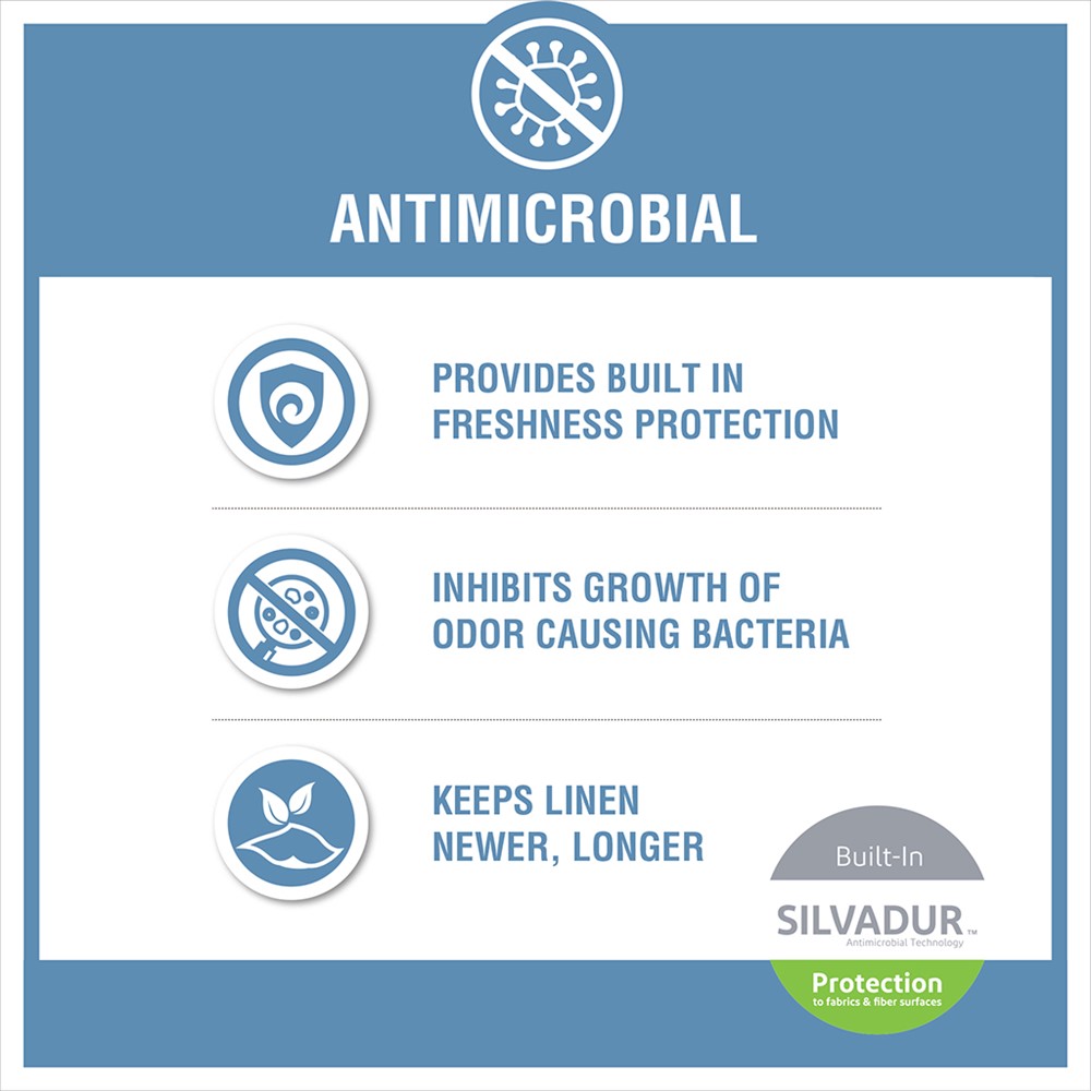 * Dupont silvadur anti-microbial treatment for health and wellness – provides odor control, prevents bacteria buildup, enhances hygiene, and extends product life by keeping linen fresher, longer