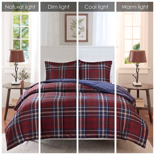 Sleep comfortably with the Madison Park Essentials Bernard 3M Scotchgard Down Alternative Comforter Mini Set. Sporting a cool plaid pattern, this ultra-soft comforter brings a classic casual style to your bedroom decor. The matching shams (1 in Twin/TwinXL) feature 2-inch flanges that add a charming touch to the top of the bed. A 3M Scotchgard Moisture Management Treatment helps wick away moisture to keep you cooler and drier for a comfortable night’s sleep. This comforter set is OEKO-TEX certified, meaning it does not contain any harmful substances or chemicals, and uses an antimicrobial treatment that provides built-in freshness protection, reducing the growth of odor causing bacteria to keep fabric lasting longer.