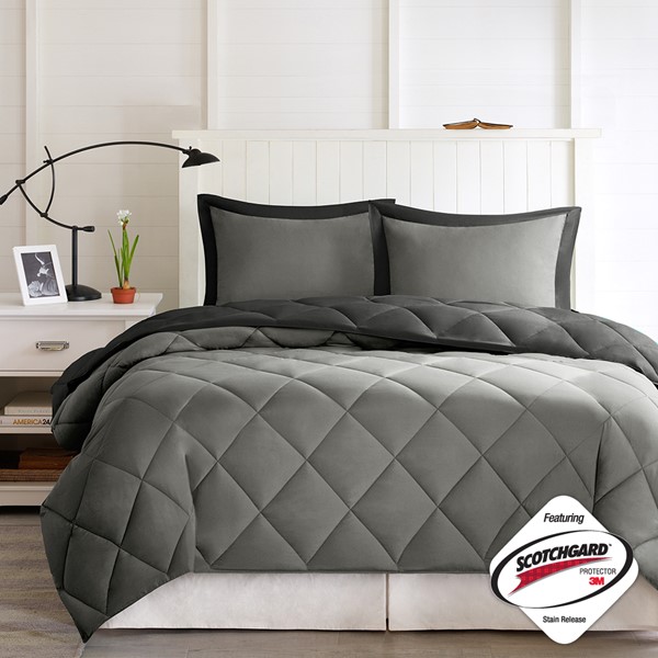 Madison Park Essentials Larkspur 3M Scotchgard Reversible Down Alt Comforter Set in Black/Grey, King BASI10-0203