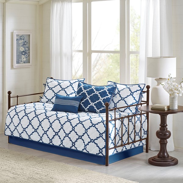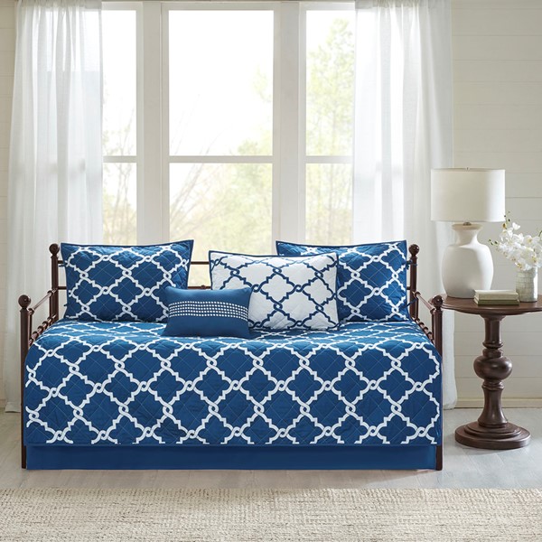 Madison Park Essentials Merritt 6 Piece Reversible Daybed Set in Navy, Daybed MPE13-627