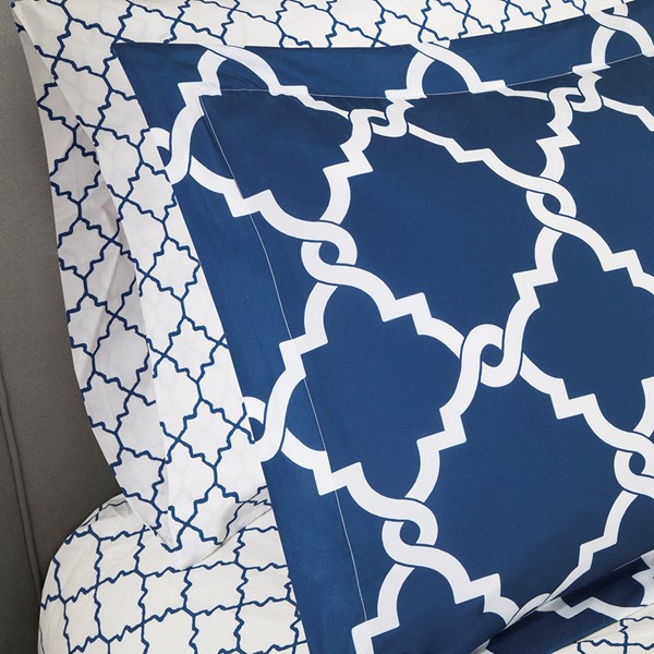 * Reversible contemporary all over fretwork design printed comforter set and cotton sheet set