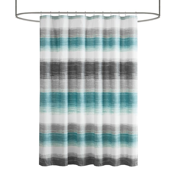 The Madison Park Essentials Saben Shower Curtain provides a modern update to your bathroom. A watercolor stripe print is beautifully displayed on the ultra-soft microfiber Shower Curtain. Bringing the best in health and wellness, this shower curtain also features an anti-microbial treatment that provides built-in freshness protection, reducing the growth of odor causing bacteria and keeps fabric lasting longer. This shower curtain is also OEKO-TEX certified, meaning it does not contain any harmful substances or chemicals, ensuring quality comfort and wellness. Coordinating bedding is also available and sold separately.