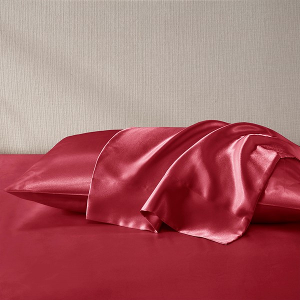 Madison Park Essentials Satin Luxury 2 PC Pillowcases in Red, King MPE21-783
