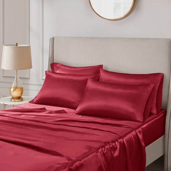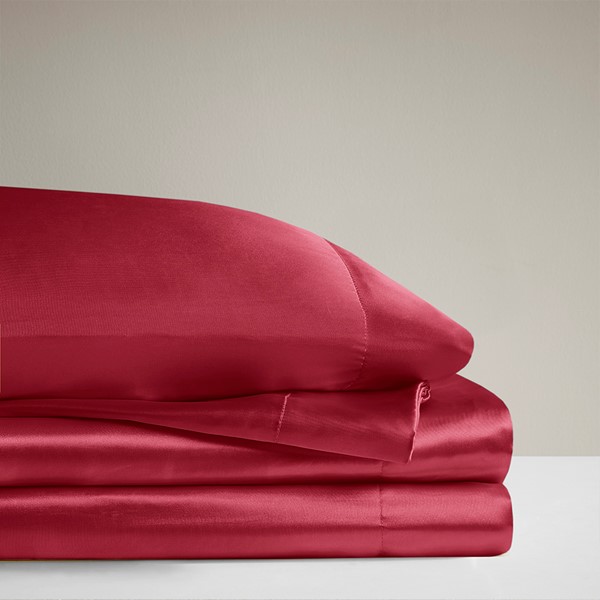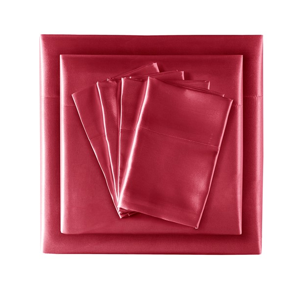 Madison Park Essentials Satin Luxury Sheet Set in Red, King SHET20-180