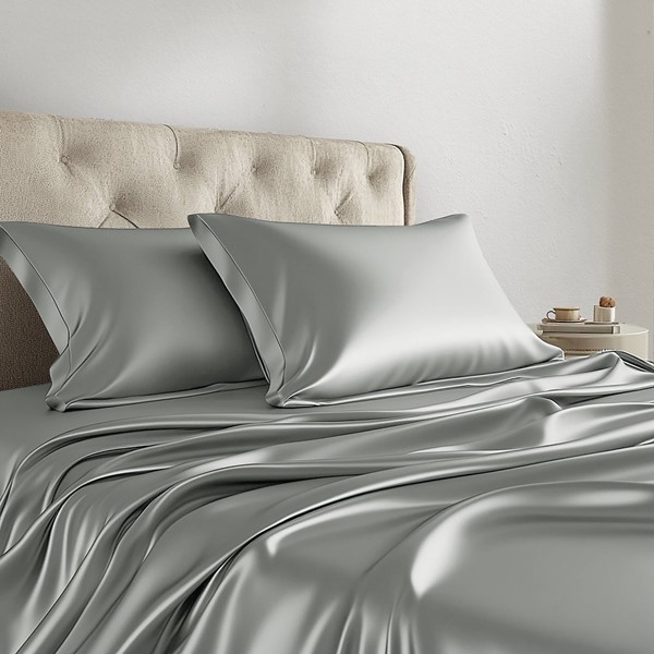 Madison Park Essentials Satin Luxury Sheet Set in Grey, Split King MPE20-1111