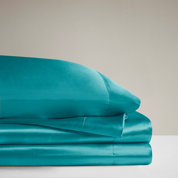 Madison Park Essentials Satin Luxury Sheet Set in Teal, Cal King SHET20-1087