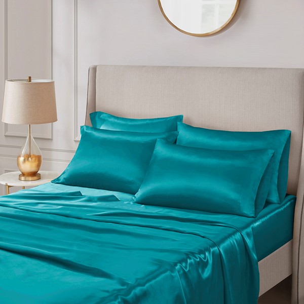 Madison Park Essentials Satin Luxury Sheet Set in Teal, Queen SHET20-1085