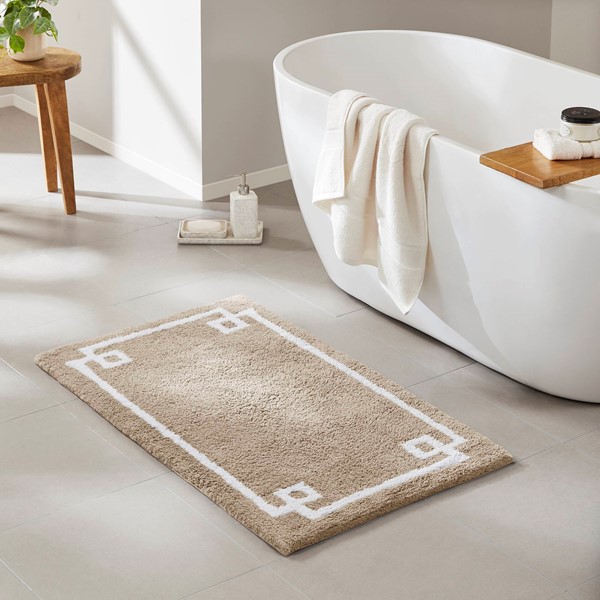 The Madison Park Evan Cotton Tufted Bath Rug provides the perfect balance of comfort and style to update your bathroom. This tufted bath rug features a contrasting white border on a soft colored ground creating a clean hotel look, while the plush medium pile weight provides pure soft comfort for your feet. The light latex coated back makes this bath rug skid resistance for better safety, while also keeping rug in place throughout the day. Machine washable for easier care, this cotton bath rug is also OEKO-TEX certified, meaning it does not contain any harmful substances or chemicals ensuring quality comfort and wellness. Bath rugs are sold separately in multiple sizes and colors, making it easy to complete any bathroom size and decor!