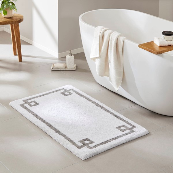 The Madison Park Evan Cotton Tufted Bath Rug provides the perfect balance of comfort and style to update your bathroom. This tufted bath rug features a contrasting grey border on a soft neutral ground creating a clean hotel look, while the plush medium pile weight provides pure soft comfort for your feet. The light latex coated back makes this bath rug skid resistance for better safety, while also keeping rug in place throughout the day. Machine washable for easier care, this cotton bath rug is also OEKO-TEX certified, meaning it does not contain any harmful substances or chemicals ensuring quality comfort and wellness. Bath rugs are sold separately in multiple sizes and colors, making it easy to complete any bathroom size and decor!