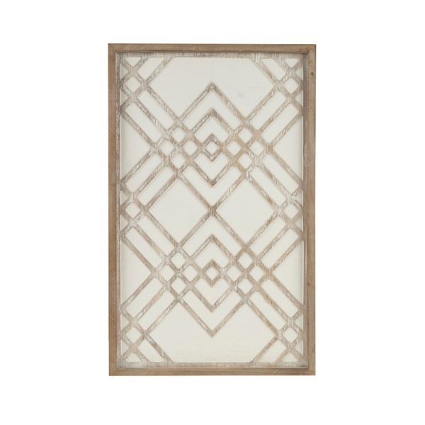 Add an intricate modern touch to your home with our Madison Park Exton Two-tone Overlapping Geometric Wood Panel Wall Decor by Artist Emily Warne. This MDF wooden wall art features a laser cut geometric pattern in a natural hue on a white washed painted ground, creating rich contrast for a unique and stylish update. The 100% real fir wood frame adds a natural and casual touch, while 4 D-rings on the reverse allows you to hang this art piece both vertically or horizontally for an easy addition to any room or decor. Comes as a single piece measuring 20×32" and spot clean only.