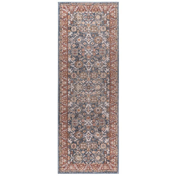 The Madison Park Faith Persian Bordered Traditional Blue and Red Woven Area Rug brings a touch of beauty to elevate your decor. This area rug features a traditional Persian design with a patterned border in rich shades of red and blue colors, for an elegant look. The soft, medium pile makes the woven rug well suited for high traffic areas, while the transparent sprayed latex reverse helps keep the rug from sliding. A rug pad is still highly recommended to keep the rug in place. Stain and fade resistant, this woven area rug is OEKO-TEX certified, meaning it does not contain any harmful substances or chemicals to ensure quality comfort and wellness. Rug is available in multiple sizes, which makes it perfect for your living room, family room, or entryways. To clean, use a vacuum or spot clean.