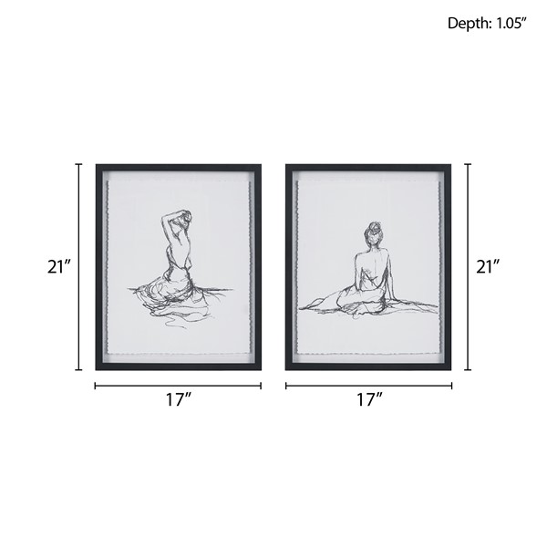 The Madison Park Feminine Figures Sketch 2-piece Framed Glass and Matted Wall Art Set by Artist Elise Green, offers an elegant modern touch to your home decor. A printed sketch of a woman is beautifully displayed under glass on deckled edge paper of each wall art, creating a sophisticated look. The black frames add a bold contrast to highlight the figure in center, while two D-rings on the reverse make each 17×21″ contemporary wall art easy to hang. Simple and elegant, this floating frame wall art brings beauty and grace to your home decor.