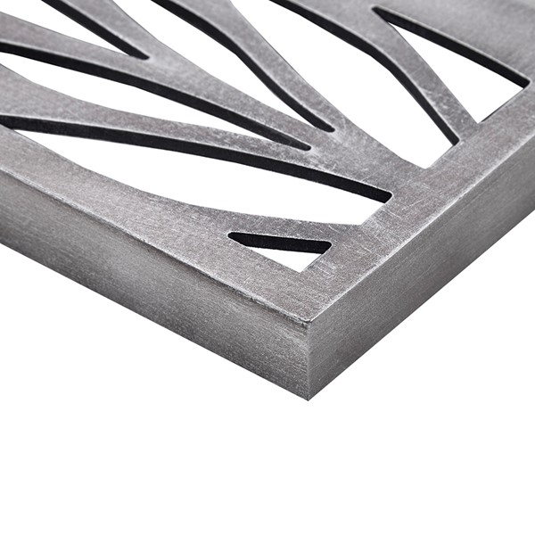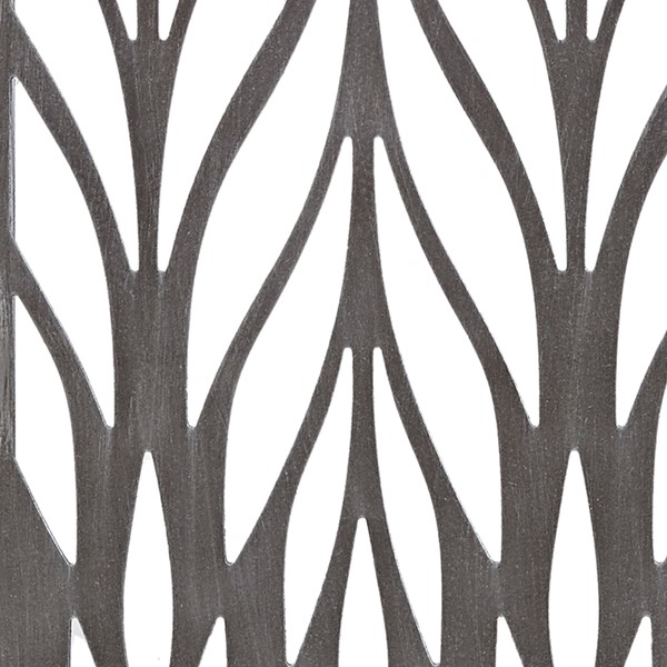 * Dimensional wall art panel set with laser cut plume pattern in a grey luster finish