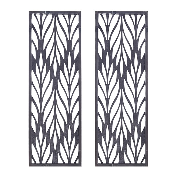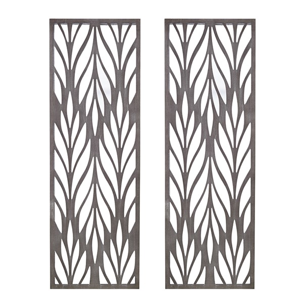 The Madison Park Florian Grey Laser Cut Wood 2-piece Panel Wall Decor Set by Artist Emily Warne offers a simple and elegant addition to your home decor. Featuring an intricately carved botanical design, each wall panel flaunts a reclaimed grey hue with a light sheen and luster for an updated modern look. The 4 D-rings on the back of each piece allow this panel set to be hung both vertically or horizontally, giving you added versatility to fit any space. Perfect for your living room, bedroom, or entryway, this botanical wall decor comes as a set and each panel measures 36×12″. Spot clean only.