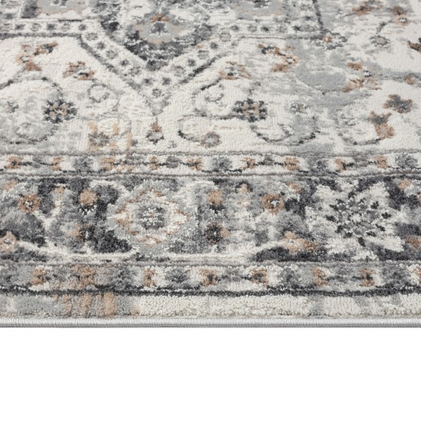 The Madison Park Frances Medallion Woven Area Rug offers a beautiful traditional update to your home decor. Made in Turkey, this machine woven area rug features a medallion pattern in shades of grey to create a globally inspired look. The soft, medium pile makes the woven rug well suited for high traffic areas, while the transparent sprayed latex reverse helps keep the rug from sliding. A rug pad is still highly recommended to keep the rug in place. Stain and fade resistant, this woven area rug is OEKO-TEX certified, meaning it does not contain any harmful substances or chemicals to ensure quality comfort and wellness. Rug is available in multiple sizes, which makes it perfect for your living room, family room, or entryways. Clean with a vacuum or by spot cleaning.