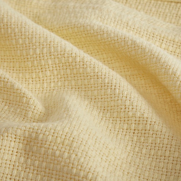 I am very pleased with this blanket as it perfectly matches the yellow-and-white checked dust ruffle and pillow shams on my guest double bed. Although the initial weave was loose, following the recommended laundering instructions improved its quality.