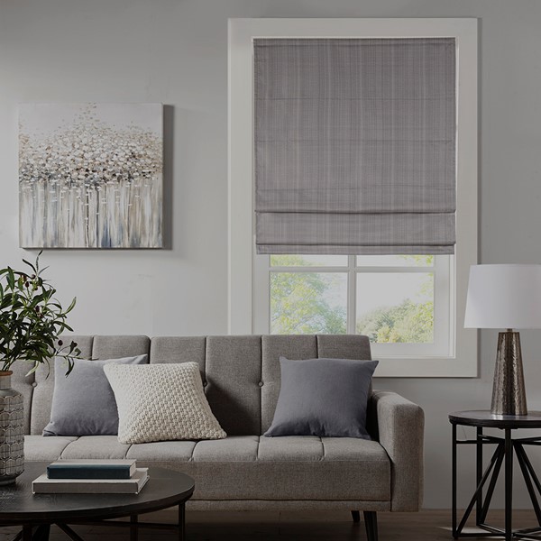 Madison Park Galen Basketweave Cordless Roman Shade Collection in Grey, 31×64" Blackout MP40-7990