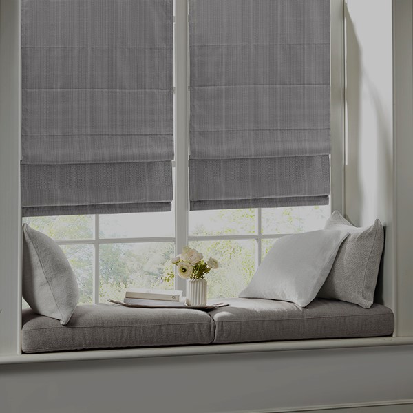 Madison Park Galen Basketweave Cordless Roman Shade Collection in Grey, 35×64" Blackout MP40-7991