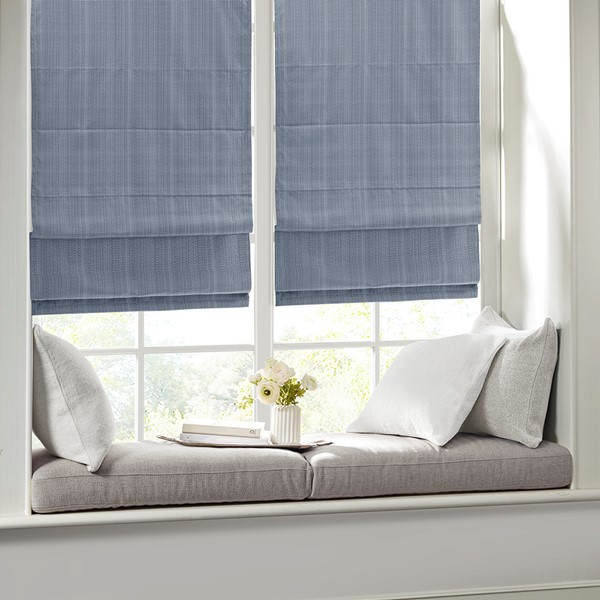 The Madison Park Galen Basket Weave Room Darkening Roman Shade offers a simple and convenient update to your home decor. This indigo blue roman shade features a basket weave texture base fabric that creates a natural look and feel. A thermal foambacking on the reverse provides energy efficiency and enhanced privacy. The cordless retraction mechanism makes it easy to open and close the window shade throughout the day, while the detachable fabric face allows for easier assembly and cleaning by lightly shaking or dusting. Though detachable from the hook and loop fastener, the top face fabric is NOT fully removable. Ready to install right out of the packaging, this roman shade can be hung inside or above the window pane allowing you to find the perfect fit for your home decor. Each shade is also OEKO-TEX certified, meaning it does not contain any harmful substances or chemicals to ensure quality comfort and wellness.