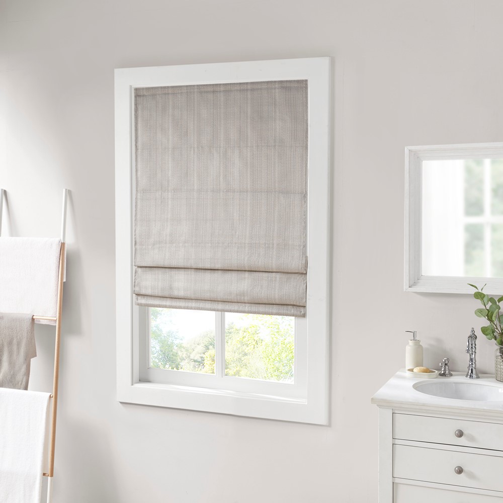 The Madison Park Galen Basket Weave Room Darkening Roman Shade offers a simple and convenient update to your home decor. This taupe roman shade features a basket weave texture base fabric that creates a natural look and feel. A thermal foambacking on the reverse provides energy efficiency and enhanced privacy. The cordless retraction mechanism makes it easy to open and close the window shade throughout the day, while the detachable fabric face allows for easier assembly and cleaning by lightly shaking or dusting. Though detachable from the hook and loop fastener, the top face fabric is NOT fully removable. Ready to install right out of the packaging, this roman shade can be hung inside or above the window pane allowing you to find the perfect fit for your home decor. Each shade is also OEKO-TEX certified, meaning it does not contain any harmful substances or chemicals to ensure quality comfort and wellness. Shade measures 64-inches in length and comes in 8 width options to suit multiple standard window sizes; each roman shade is sold as a single and comes with a printed instructional guide as well as an instructional video available on site. Assembly is required.