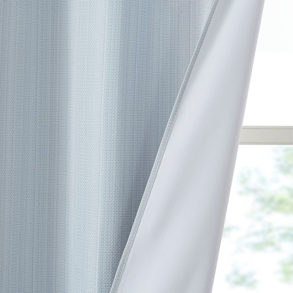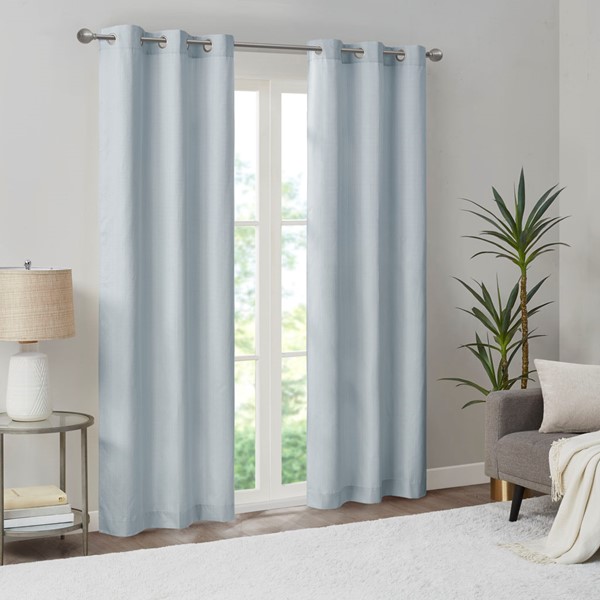 Create a stylish and comfortable space with the Madison Park Galen Basketweave Room Darkening Window Panel Pair. These room darkening window curtains are made from a basket weave texture base fabric that creates a natural look and feel. A thermal foambacking on the reverse provides energy efficiency and serves as an effective barrier to soften exterior light and noise. When closed, these solid window curtains offer a moderate level of privacy with a low ambiance level of lighting. This room darkening window panel pair is also OEKO-TEX certified, meaning they do not contain any harmful substances or chemicals to ensure quality comfort and wellness. Finished with silver grommet tops that fit up to a 1.25 inch diameter rod; Each panel measures 84" long and is machine washable for easy care. Complete the look by layering in our coordinating Madison Park Galen Roman Shade collection for a fresh update, available and sold separately. Perfect for dining rooms, living room, or any open spaces.