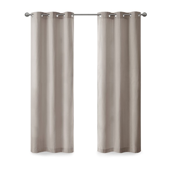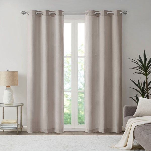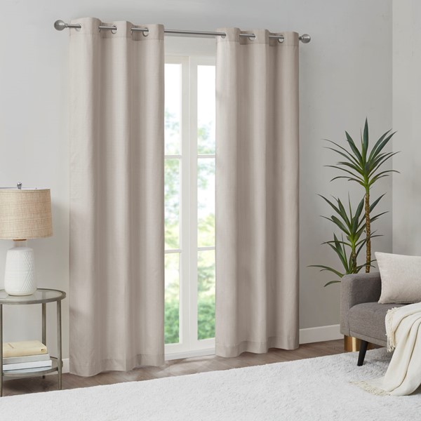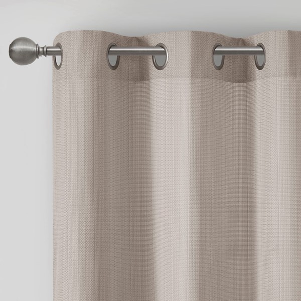 Create a stylish and comfortable space with the Madison Park Galen Basketweave Room Darkening Window Panel Pair. These room darkening window curtains are made from a basket weave texture base fabric that creates a natural look and feel. A thermal foambacking on the reverse provides energy efficiency and serves as an effective barrier to soften exterior light and noise. When closed, these solid window curtains offer a moderate level of privacy with a low ambiance level of lighting. This room darkening window panel pair is also OEKO-TEX certified, meaning they do not contain any harmful substances or chemicals to ensure quality comfort and wellness. Finished with silver grommet tops that fit up to a 1.25 inch diameter rod; Each panel measures 84" long and is machine washable for easy care. Complete the look by layering in our coordinating Madison Park Galen Roman Shade collection for a fresh update, available and sold separately. Perfect for dining rooms, living room, or any open spaces.