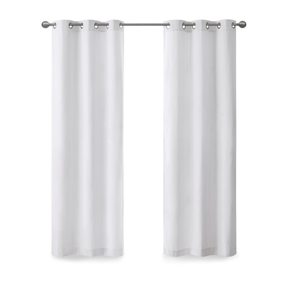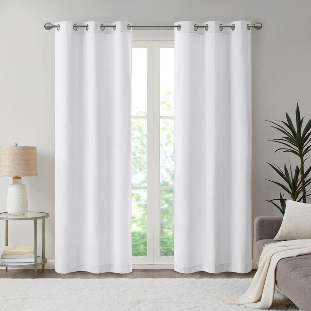 Create a stylish and comfortable space with the Madison Park Galen Basketweave Room Darkening Window Panel Pair. These room darkening window curtains are made from a basket weave texture base fabric that creates a natural look and feel. A thermal foambacking on the reverse provides energy efficiency and serves as an effective barrier to soften exterior light and noise. When closed, these solid window curtains offer a moderate level of privacy with a low ambiance level of lighting. This room darkening window panel pair is also OEKO-TEX certified, meaning they do not contain any harmful substances or chemicals to ensure quality comfort and wellness. Finished with silver grommet tops that fit up to a 1.25 inch diameter rod; Each panel measures 84″ long and is machine washable for easy care. Complete the look by layering in our coordinating Madison Park Galen Roman Shade collection for a fresh update, available and sold separately. Perfect for dining rooms, living room, or any open spaces.