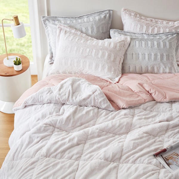 Sleep in the pure softness and comfort of the Madison Park Gia Back Print Long Fur Comforter Mini Set. The ultra-soft grey comforter flaunts a stylish brushed faux fur on the face that flips to a soft faux mink reverse, for a luxurious look and feel. Matching shams (1 sham for Twin sizes) mirror the design of the comforter and feature a 2-inch flange to complete the comforter set. Hypoallergenic filling in the faux fur comforter provides exceptional warmth and comfort, while the end-to-end box stitching keeps the filling in place. Incredibly soft, this reversible long fur comforter mini set brings the perfect amount of comfort and glamorous style to your bedroom decor. This comforter is OEKO-TEX certified, meaning it does not contain any harmful substances or chemicals to ensure quality comfort and wellness.