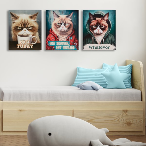 * Wall decor with grumpy cat art printed on canvas with humor saying