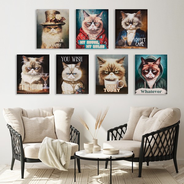 * Wall decor with grumpy cat art printed on canvas with humor saying