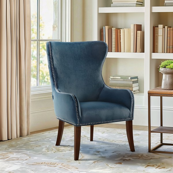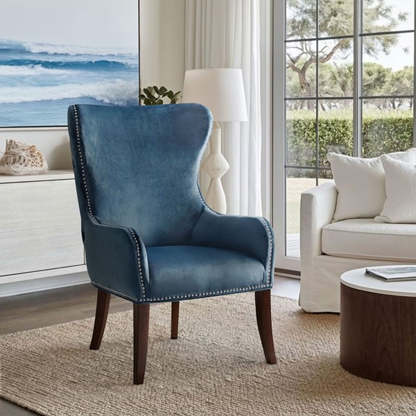 * Versatile wingback accent chair featuring a button-tufted back and silver nailhead trim for a classic, refined look