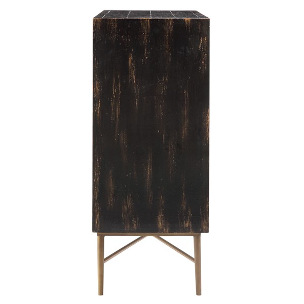 The Madison Park Hanley accent storage cabinet brings bold texture and modern sophistication with its dimensional honeycomb-style doors and hand-applied rubbed black finish. Bronze-finished metal base and handles add rich contrast, while the adjustable shelf offers flexible storage. Perfect for entryways, hallways, living rooms, or dining areas, it pairs effortlessly with modern, industrial, transitional, global, bohemian and glam decor styles. Make a stylish statement while adding smart storage to your space.