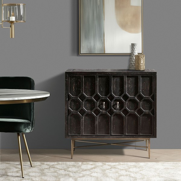 * Accent storage cabinet with dimensional honeycomb-inspired style door design adds bold, modern texture