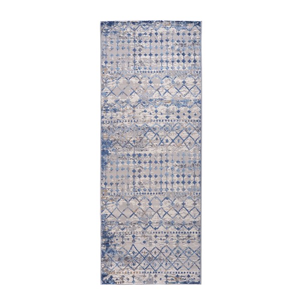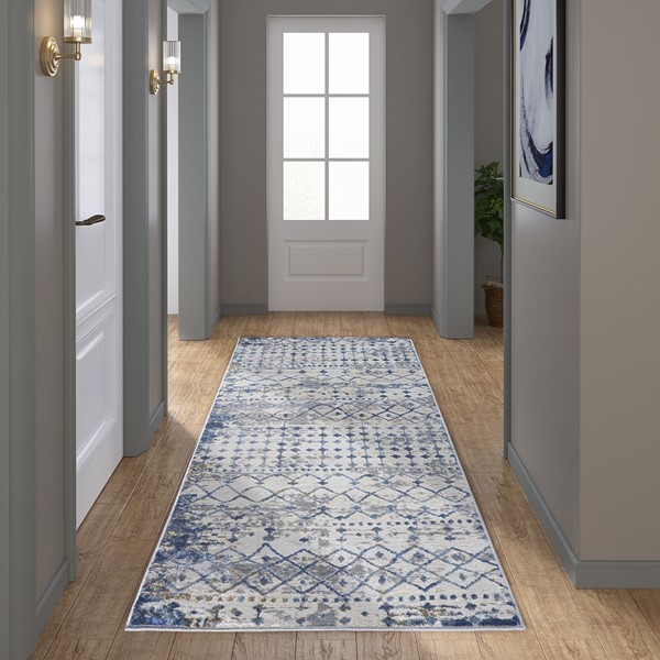 Madison Park Hannah Moroccan Global Woven Area Rug in Blue/Cream, 3×8′ Runner MP35-7576
