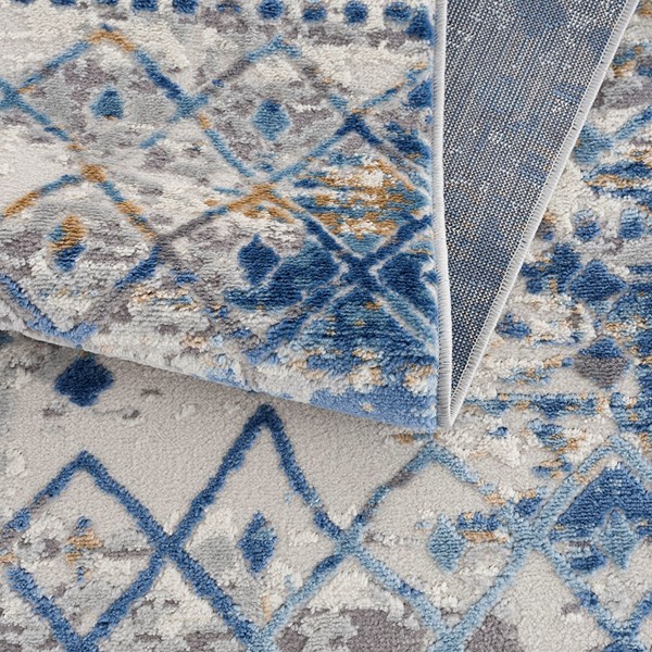 Add a fashionable style to your living space with the Madison Park Hannah Moroccan Area Rug. This machine woven, cut area rug features a blue and cream globally inspired print creating a rich and beautiful, look and feel. The medium soft pile provides simple comfort, as a transparent sprayed latex reverse helps to prevent rug from sliding making it well suited to high-traffic areas in your home. Easy to clean with a vacuum or spot cleaning, while also stain and fade resistant – this area rug brings a splash of color and a textural element to any home decor. This woven area rug is OEKO-TEX certified, meaning it does not contain any harmful substances or chemicals to ensure quality comfort and wellness. Available in multiple colors and sizes, this rug is perfect for any living room, family room, and or other room decor. A rug pad is highly recommended to keep the rug more secured in place; Rug pad sold separately.