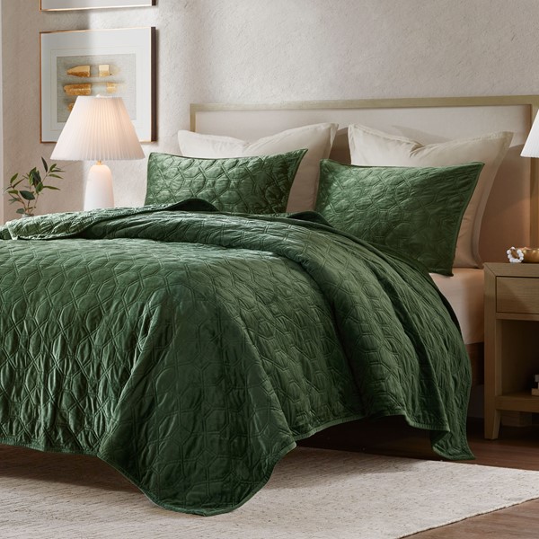 10 reviews for Madison Park Harper 3 Piece Velvet Quilt Set in Green, King/Cal King MP13-6467